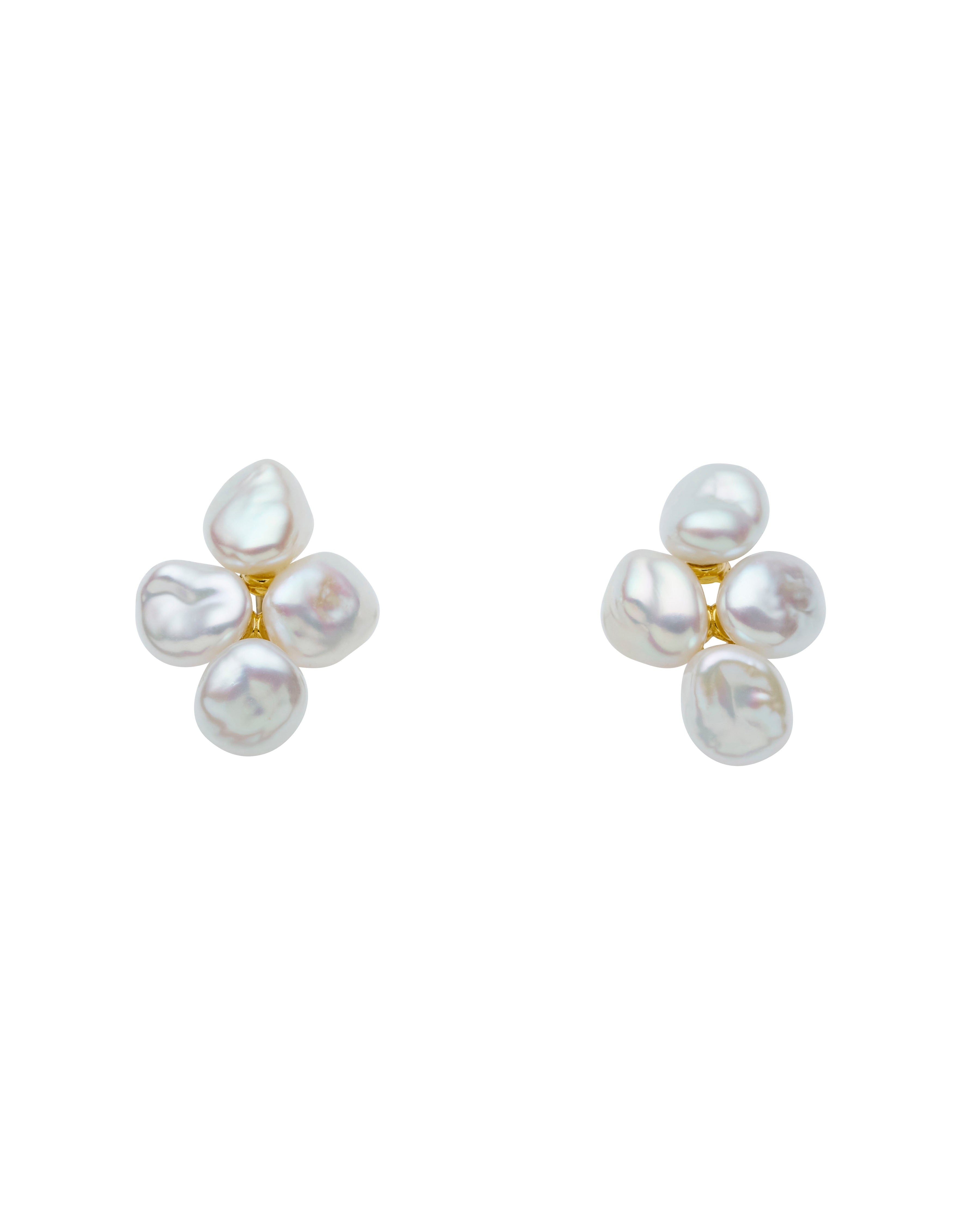 The Mira Earrings feature a dainty cluster of freshwater Pearls set on a 24K gold plated stud. Handcrafted in Italy.